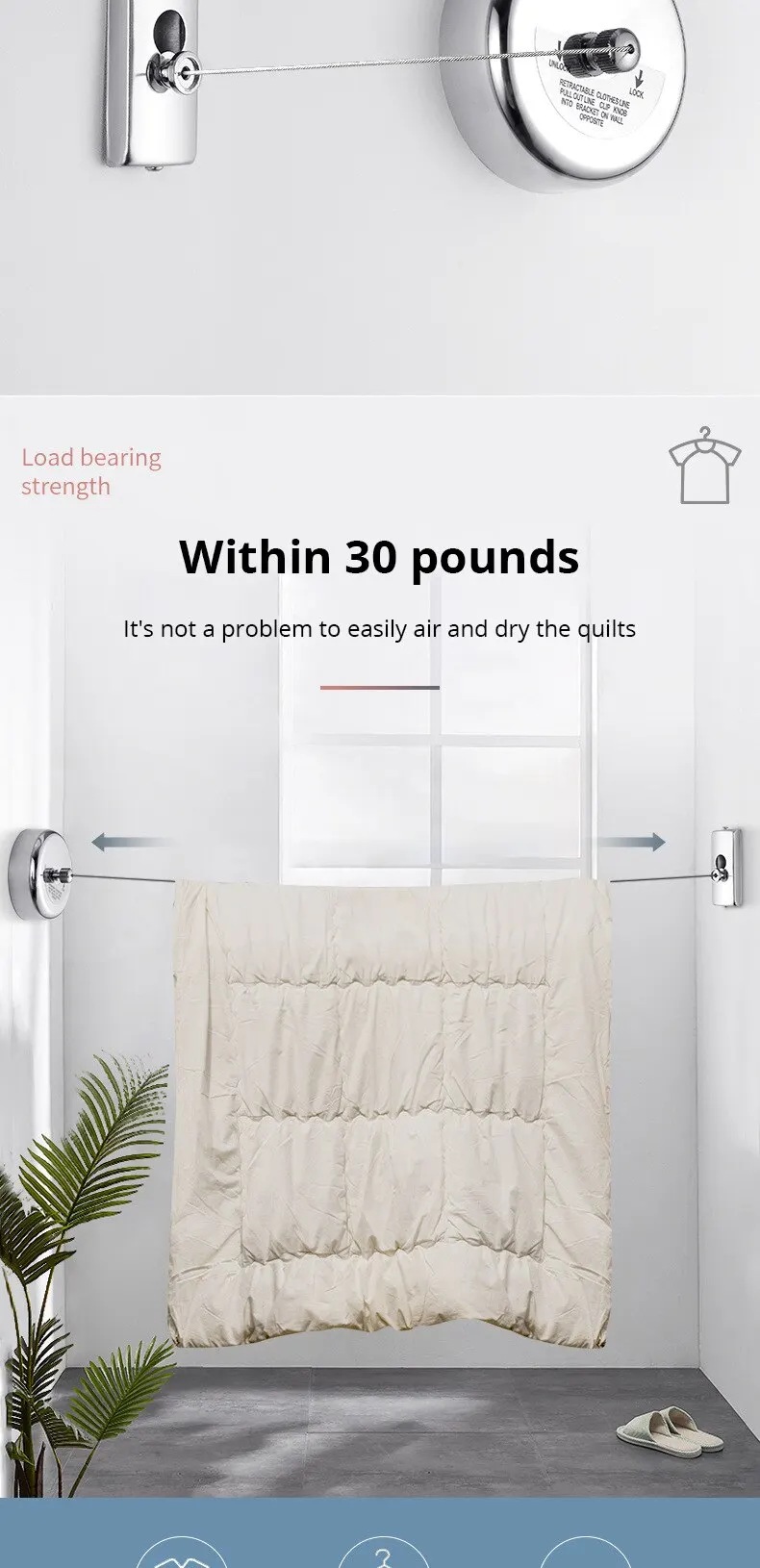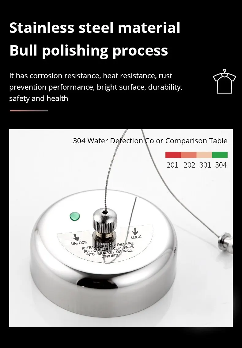1. The clothes line is made of quality 304 stainless steel material which can bear large capacity, it is sturdy and durable to use.