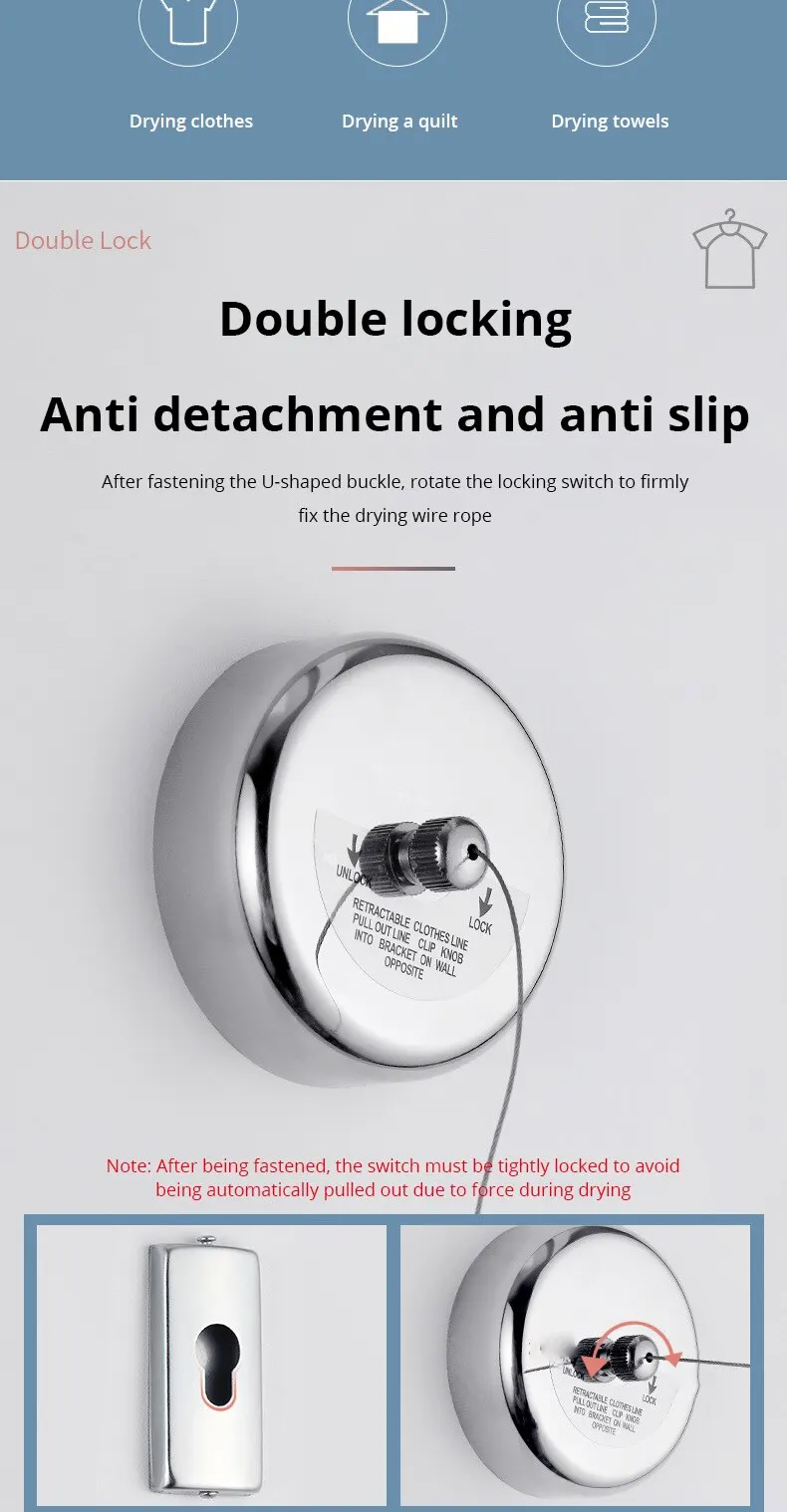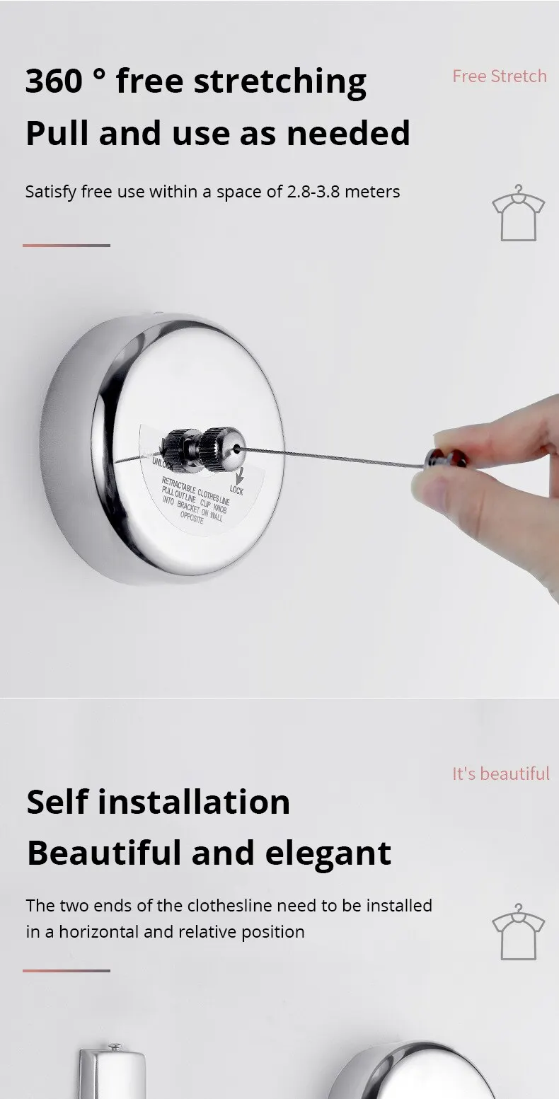 2. Comes with installation screw accessory, the retractable clothesline is easy to install and great for hotel and home use.
